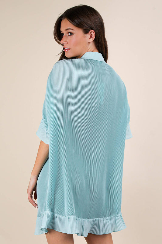 Blue Pleated Mini Dress