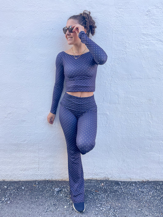 Blue Polka Dot Flare Leggings